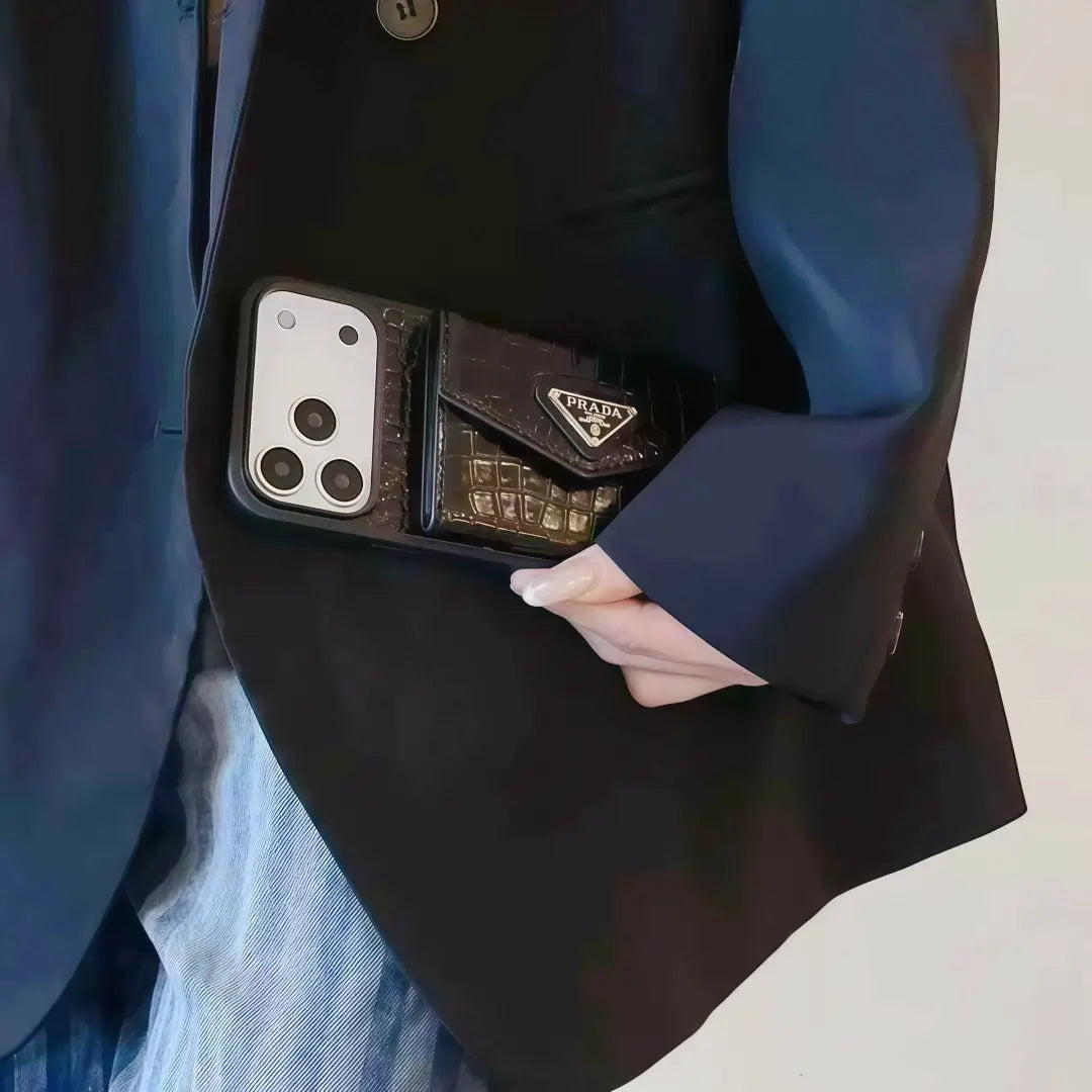 Ideal for those who prefer a wallet-style phone case without the bulk, this Prada case is a modern essential for everyday carry.