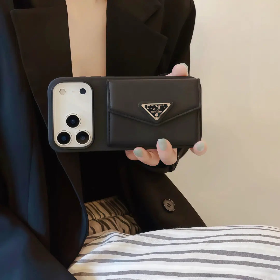 Elevate your everyday carry with the Prada Leather Card Holder iPhone Case, designed for those who appreciate timeless style and practical luxury.